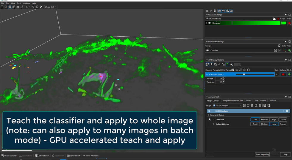 The new training workflow gives you the power to build a robust pixel classifier quickly. In testing, the time needed to create 3D annotations was reduced by (up to) 15x.