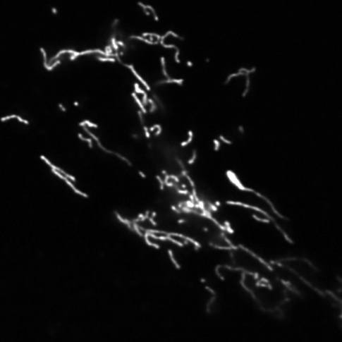 Figure 1 – The restoration DL model receives as input a low signal to noise ratio (SNR) image (left) and output a high SNR image (right). Image depicts a cell with fluorescently labelled mitochondria imaged by iSIM (super resolution microscopy). Image Credits: Dr. Hari Shroff, Dr. Jiji Chen, Mr. Yijun Su (NIBIB/NIH, Bethesda, USA)